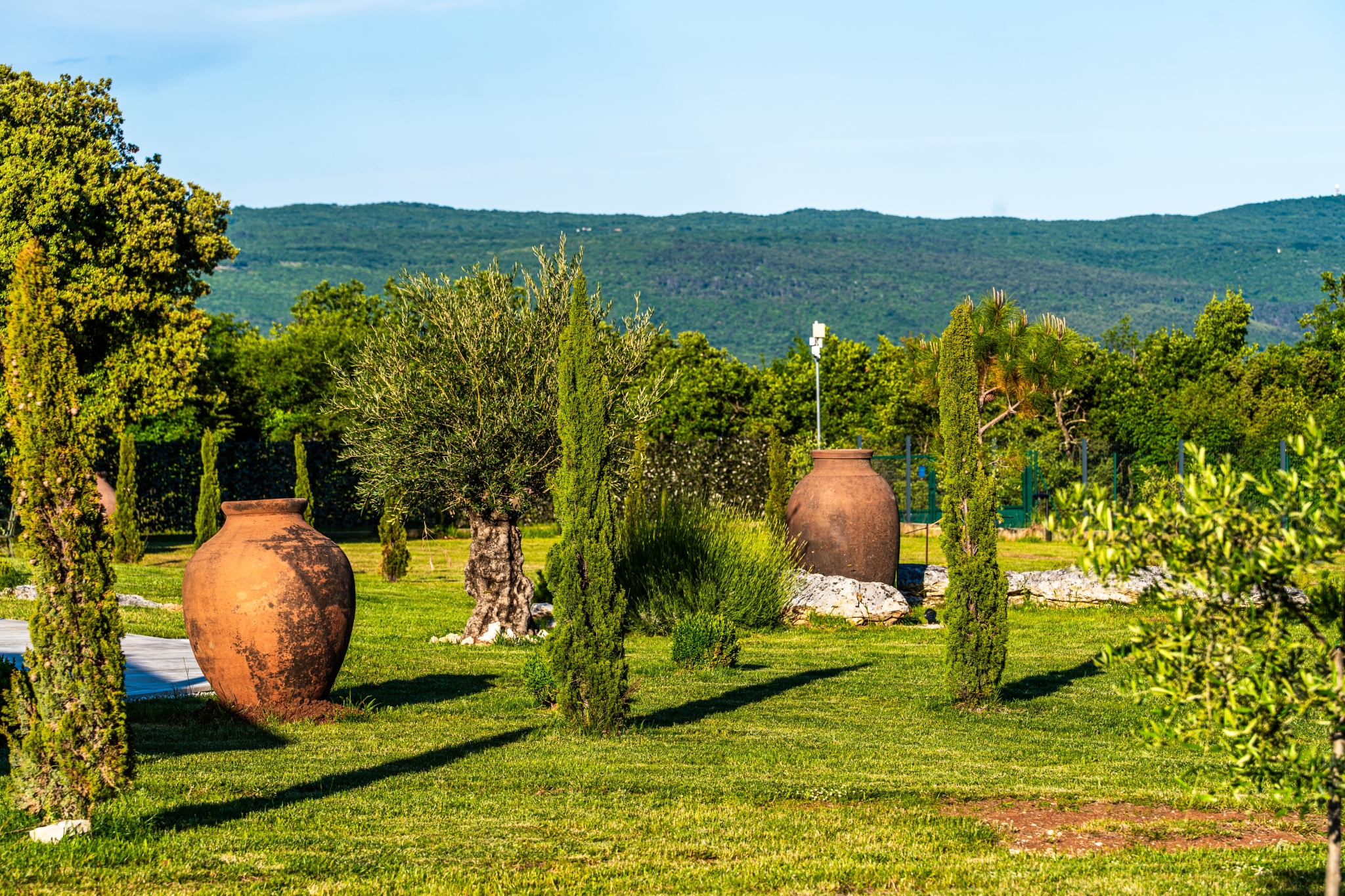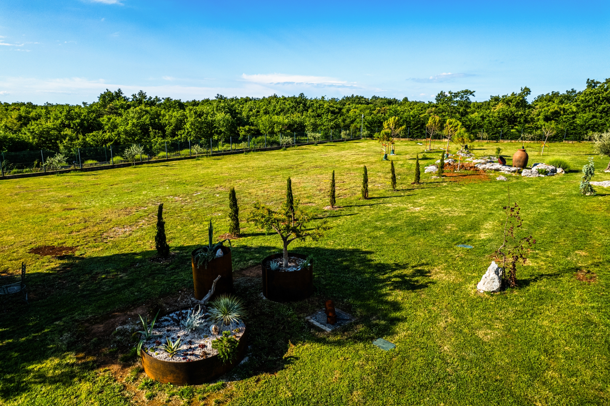 Zwischen dem Grün finden Sie auch einen kleinen, familiengepflegten Olivenhain sowie eine Auswahl an Trüffelbäumen, die in Symbiose mit Eichen wachsen – eine natürliche Verbindung, die die einzigartige Flora Istriens symbolisiert.