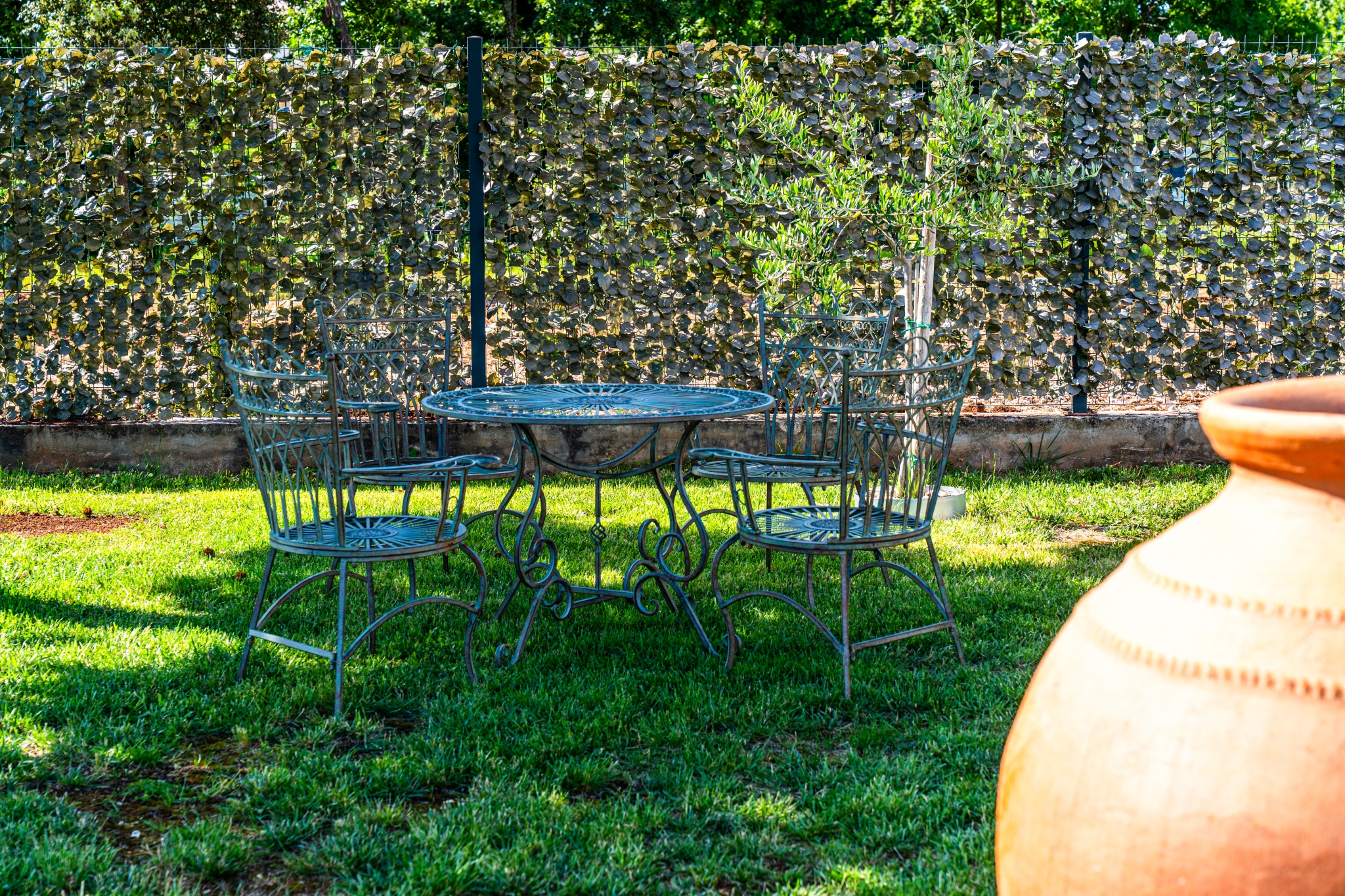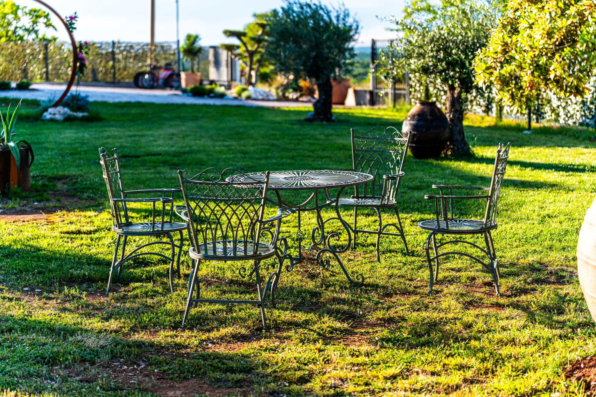 Um Ihnen ein vollständiges Eintauchen in dieses duftende Paradies zu ermöglichen, verfügt der Garten über zwei Sitzgruppen im rustikalen Stil mit Tischen und Stühlen – perfekt zum Entspannen, Lesen oder um einfach die Farben und Düfte Istriens und des Mittelmeers zu genießen.